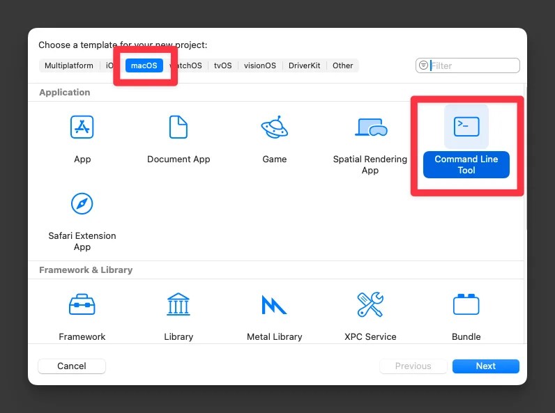 2. 平台選擇 macOS,應用程式選擇 Command Line Tool